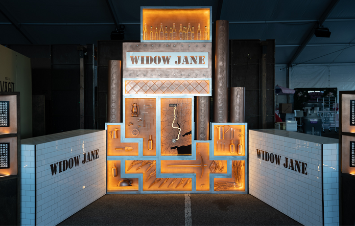 Scope: Fabrication and installation of a custom pop-up for Widow Jane including bars and a dimensional display wall with custom signage, lighting, and accent pieces.